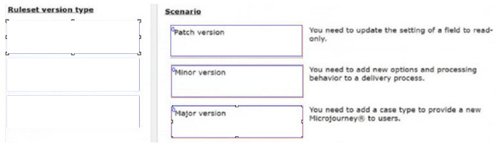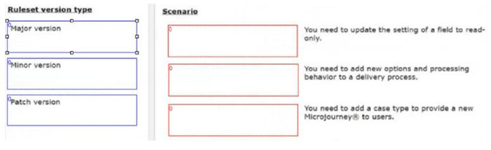 Drag the appropriate ruleset version type on the left to the corresponding scenario on the right.