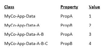 Each of the following classes has a data transform named SetValues with the Call data transforms in superclass option selected. The SetValues data transforms set the properties PropA and PropB, as shown in the following table.