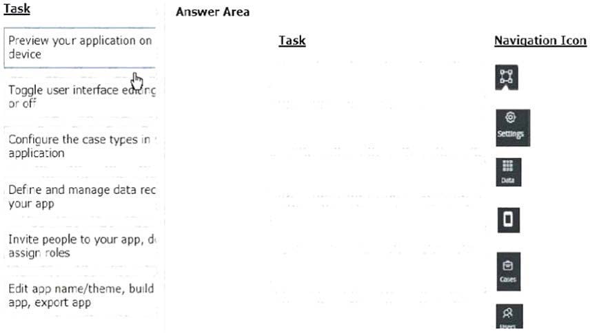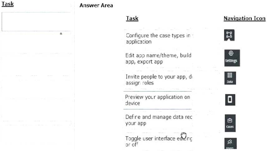 Select each Task on the left and drag it to the correct Navigation Icon on the right.
