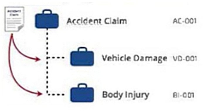 You are configuring an accident claim case for an automobile insurance company with two child cases as illustrated.