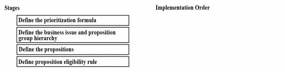 Designing the Next-Best-Action strategy that drives AI-powered one-to-one Customer Engagement is a staged process. Each stage refines the proposition selection process. Place the stages in the order of implementation.