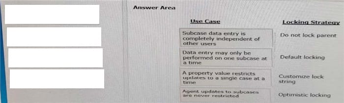 In the Answer Area, drag each use case on the left to the appropriate locking strategy on the right.