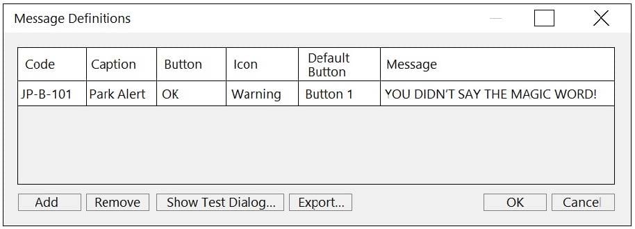 The following image shows a Message Definitions configuration.