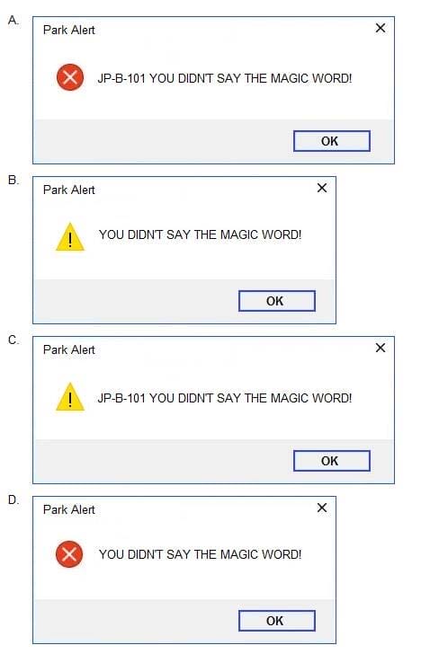 Which option is the correct representation of the message configuration settings?