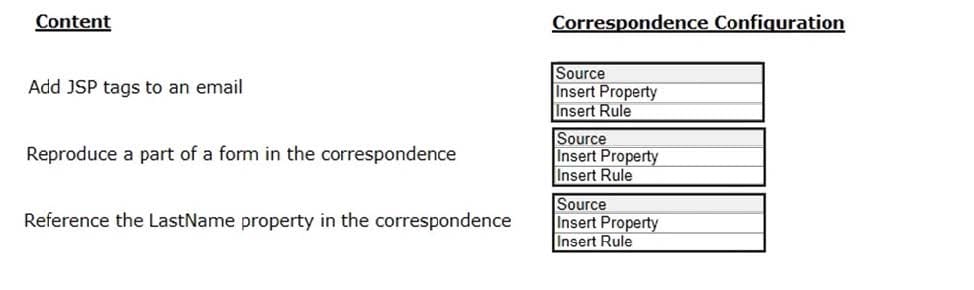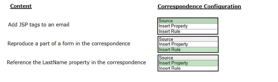In the Answer Area, select the appropriate correspondence configuration for each type of content.