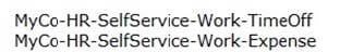D. Instances of MyCo-HR-SelfService-Work-TimeOff and MyCo-HR-SelfService-Work- Expense
