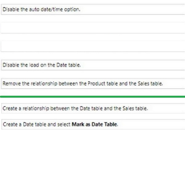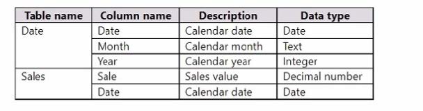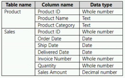 You have a Power BI data model that analyzes product sales ever time. The data model contains the following tables.