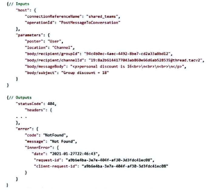 A company deploys a set of automation processes. A process generates errors. A portion of the error log is displayed below.