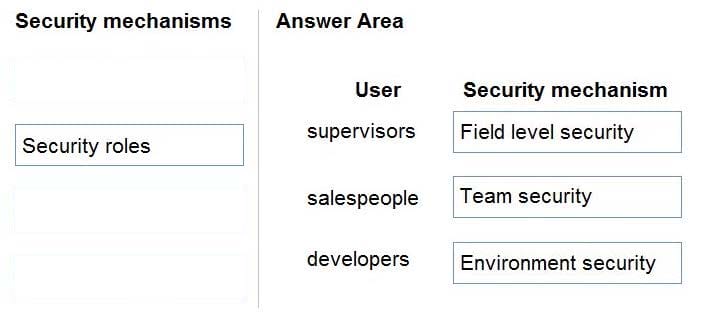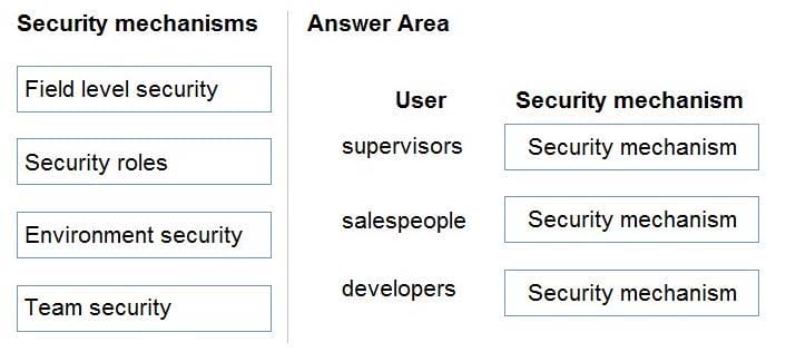 How should you configure security? To answer, drag the appropriate security mechanisms to the correct users. Each security mechanism may be used once, more than once, or not at all. You may need to drag the split bar between panes or