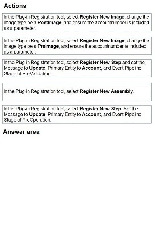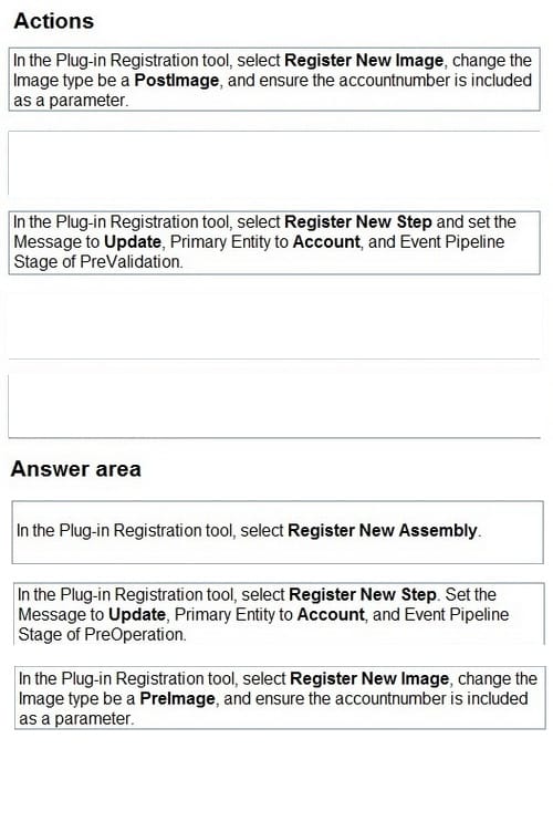 Which three actions should you perform in sequence? To answer, move the appropriate actions from the list of actions to the answer area and arrange them in the correct order.