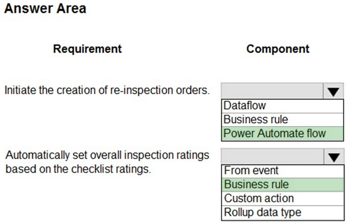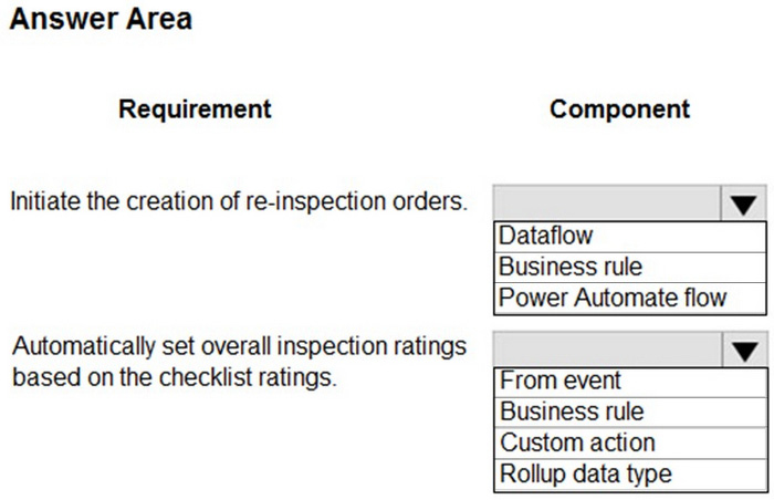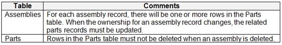 You are designing a Microsoft Power Platform solution for an automobile parts manufacturer. You create the following tables: