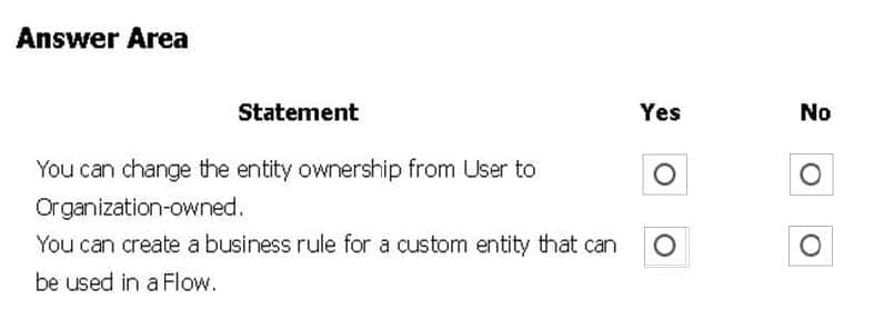 For each of the following statements, select Yes if the statement is true. Otherwise, select No.