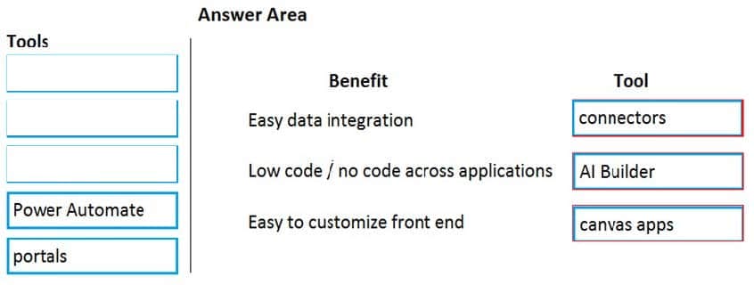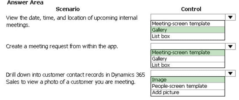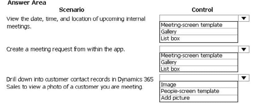 Which types of controls should you recommend using in Power Apps? To answer, select the appropriate options in the answer area.