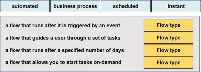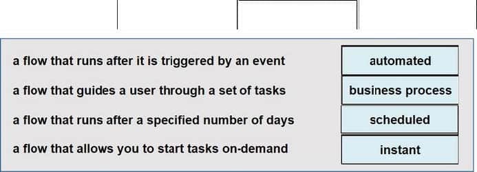 Match each flow type to its function. To answer, drag the appropriate flow type from the column on the left to its description on the right. Each option may be used once, more than once, or not at all.