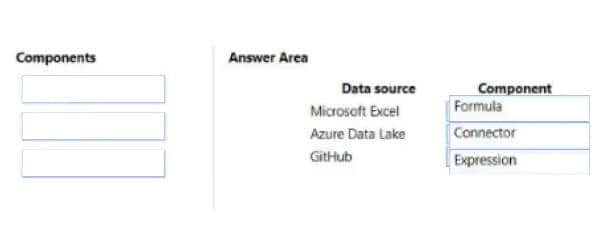 What should you use? To answer, drag the appropriate components to the correct data sources. Each component may be used once, more than once, or not at all. You may need to drag the split bar between panes or scroll to view content.