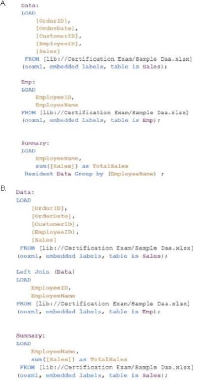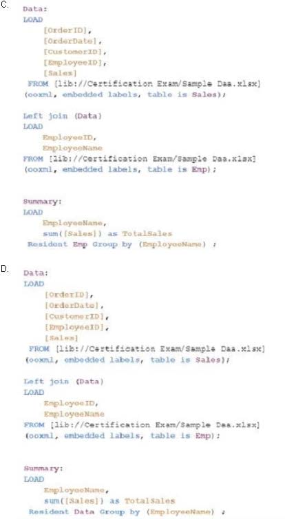 A data architect needs to build a dashboard that displays the aggregated sales for each sales representative. All aggregations on the data must be performed in the script.