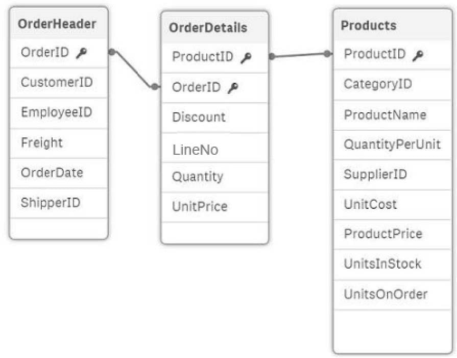 The three tables CANNOT be modified as all fields are required. A data architect must create a Cost of Goods Sold (COGS) field calculated as UnitCost* Quantity. Some products may NOT have UniCost, so the COGS value must be zero for these products.