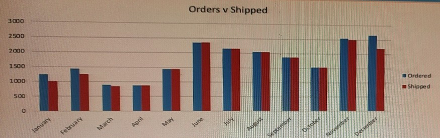 The business analyst needs to replicate the chart above to show Order and Shipping amounts on the same Month axis.