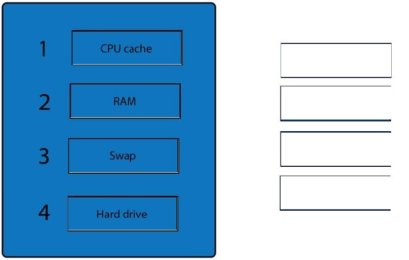 A forensic analyst is asked to respond to an ongoing network attack on a server. Place the items in the list below in the correct order in which the forensic analyst should preserve them.