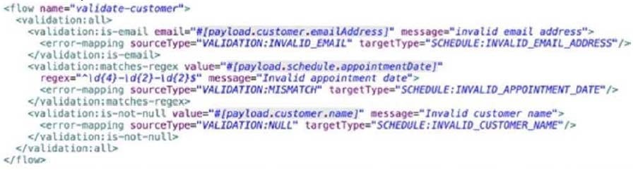 An API has been built to enable scheduling email provider. The front-end system does very little data entry validation, and problems have started to appear in the email that go to patients. A validatecustomer'' flow is added validate the data.