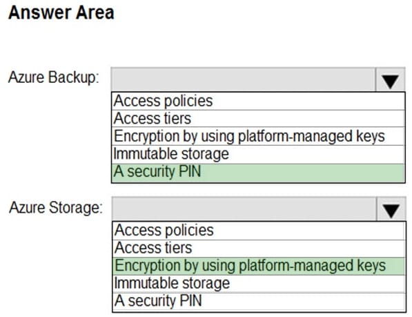 You need to recommend which capabilities of Azure Backup and Azure Storage provide the strongest protection against ransomware attacks. The solution must follow Microsoft Security Best Practices.
