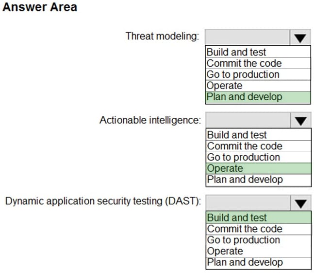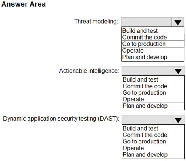 During which stage of a continuous integration and continuous deployment (CI/CD) DevOps process should each security-related task be performed? To answer, select the appropriate options in the answer area.