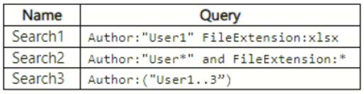 From Microsoft Purview, you create the content search queries shown in the following table.