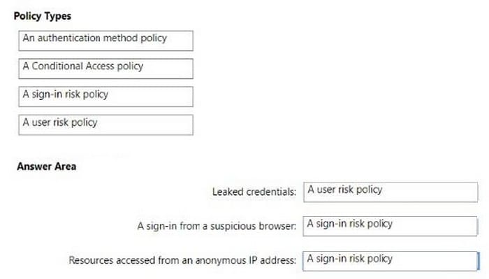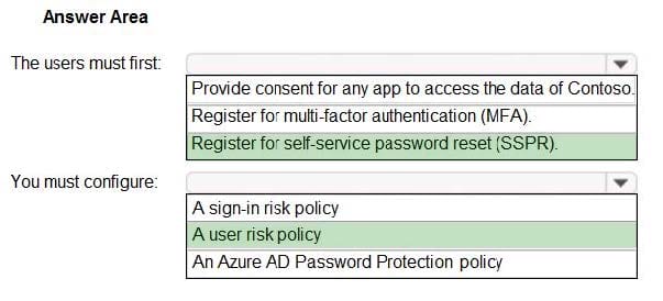 You have an Azure Active Directory (Azure AD) tenant named contoso.com that has Azure AD Identity Protection policies enforced.