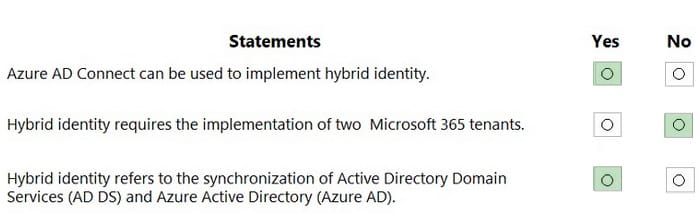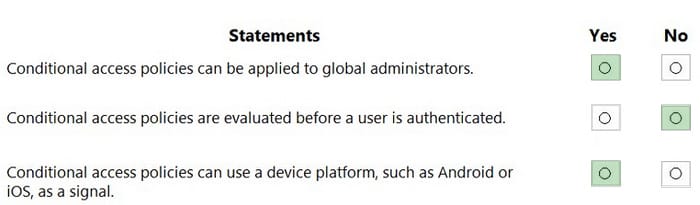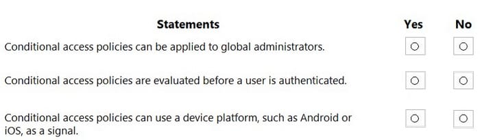 For each of the following statements, select Yes if the statement is true. Otherwise, select No.