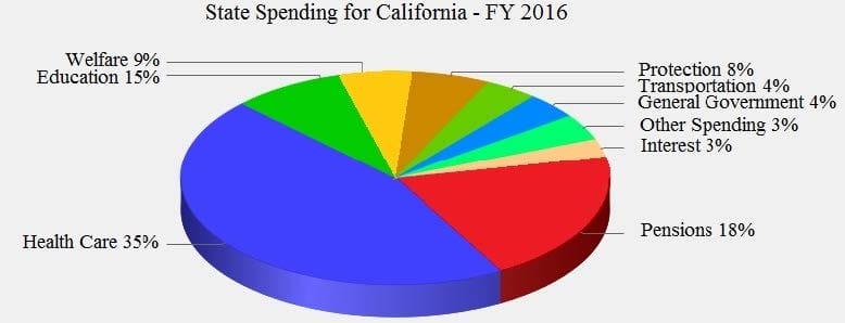 D. California's budgetary allotments show that health care and pensions are equally important.