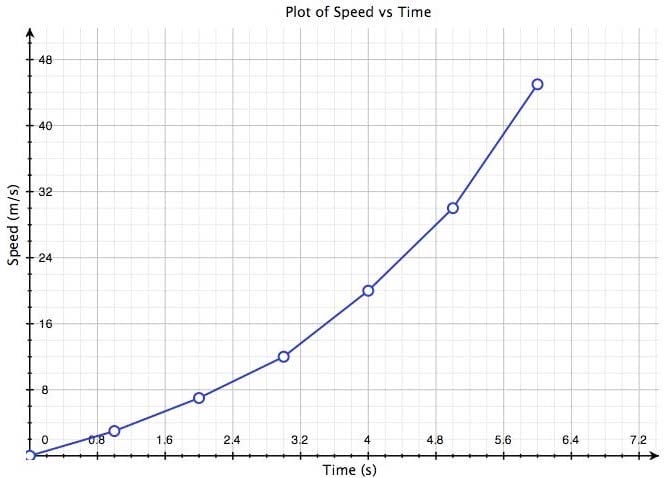 The figure shows a graph of the speed of a test vehicle, plotted every second for 6 seconds during an experiment.