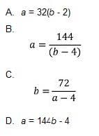 a is inversely proportional to (b - 4). If a = 8 and b = 22, express a in terms of b.