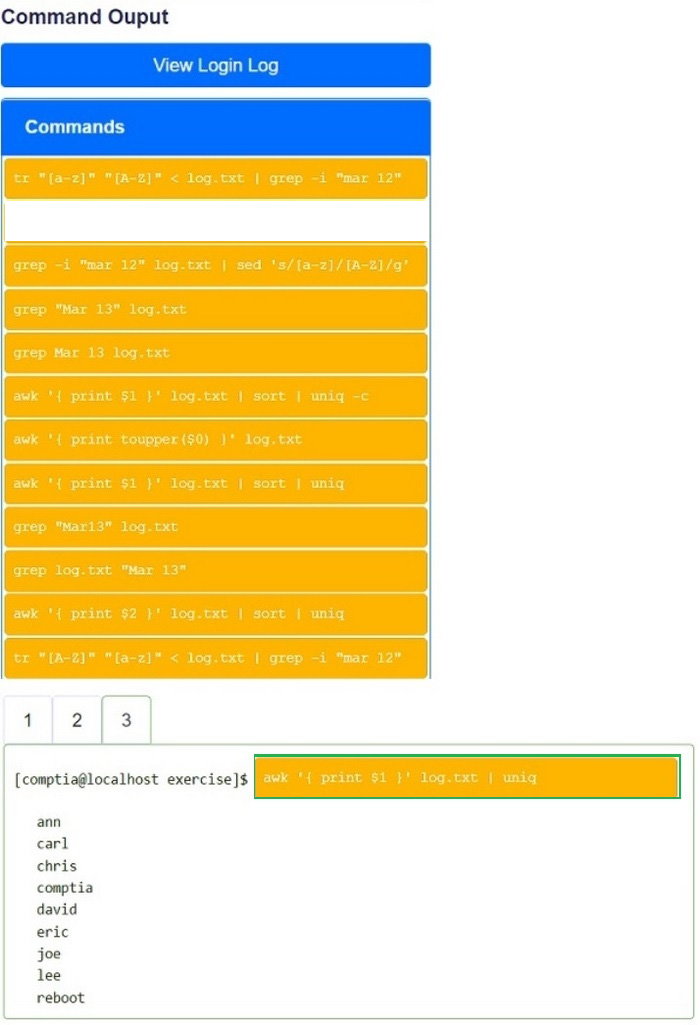 You have been asked to parse a log file of logins to determine various information about who is logging in and when.